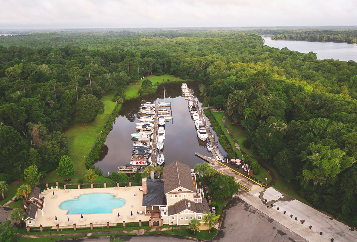 • Classic Southern Clubhouse nestled in the beautiful oak canopy overlooking the harbor.