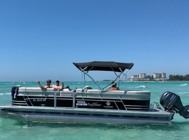 This pontoon boat is exactly what you’ve been looking for. This boat seats a total of 10 people and is equipped with a Yamaha 90hp outboard motor. The spacious seating lets you lounge in comfort in the sun, and the rear boarding ladder lets you take a dip with ease. You’re about to have a great day on the water!